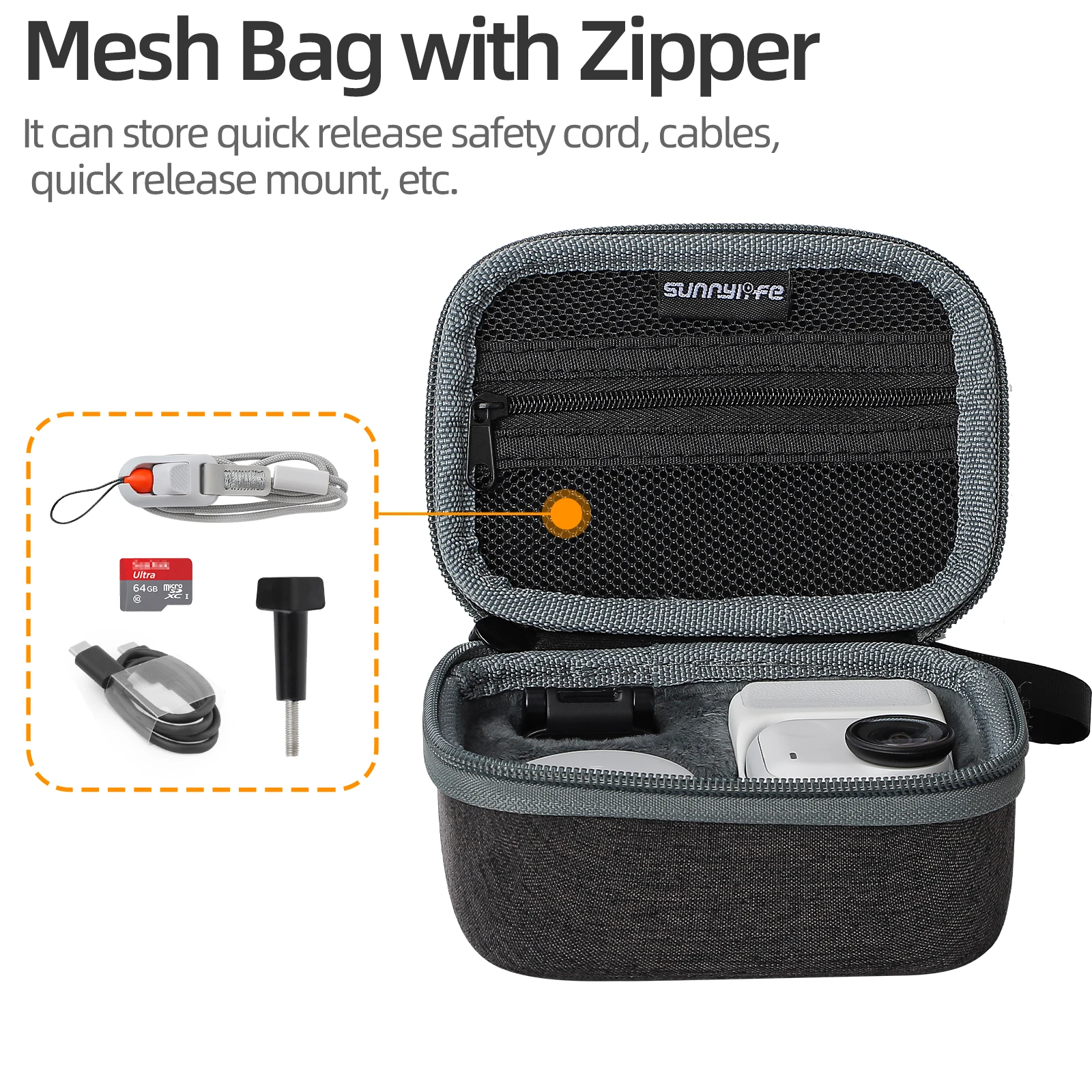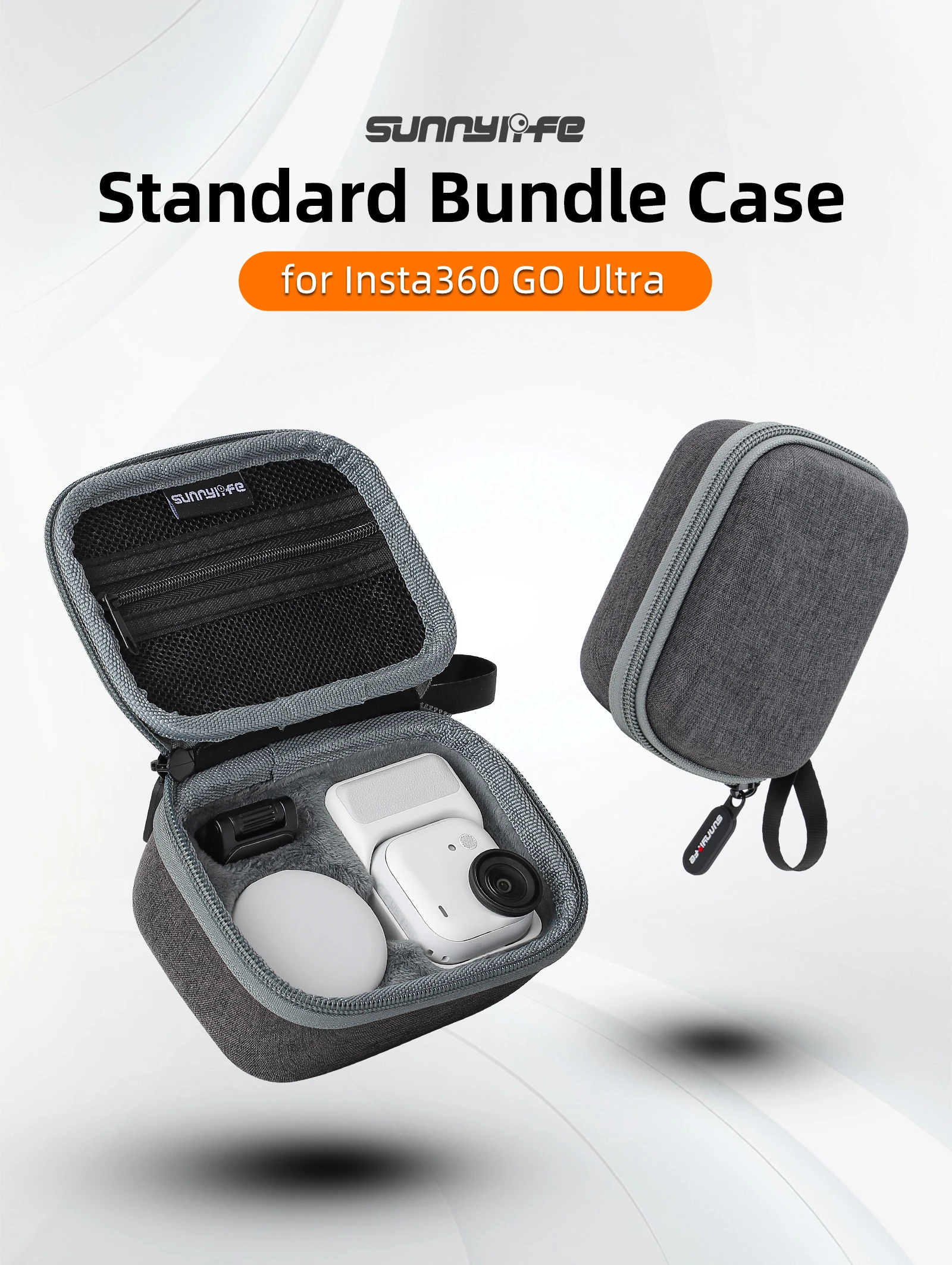 1. The standard package can store For Insta360 GO Ultra camera, magnetic lanyard, magnetic easy clip, quick release neck anti loss rope, data cable, magnetic quick release and other accessories.